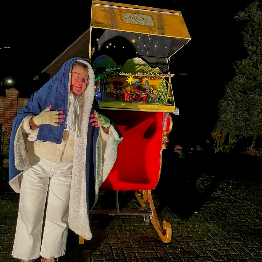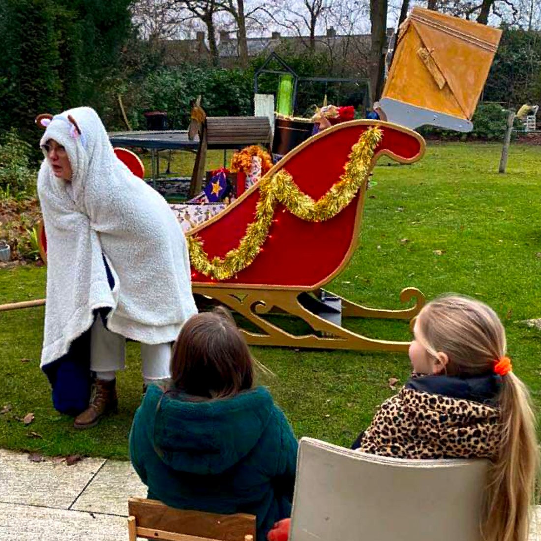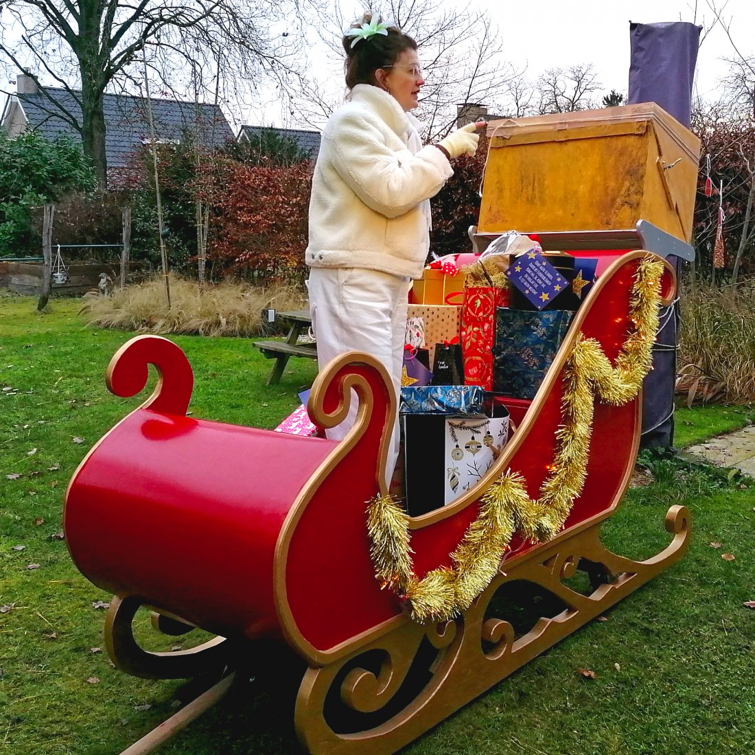 Ze zit niet op een ezeltje maar loopt met een mooie grote arrenslee vol geschenken door het land.